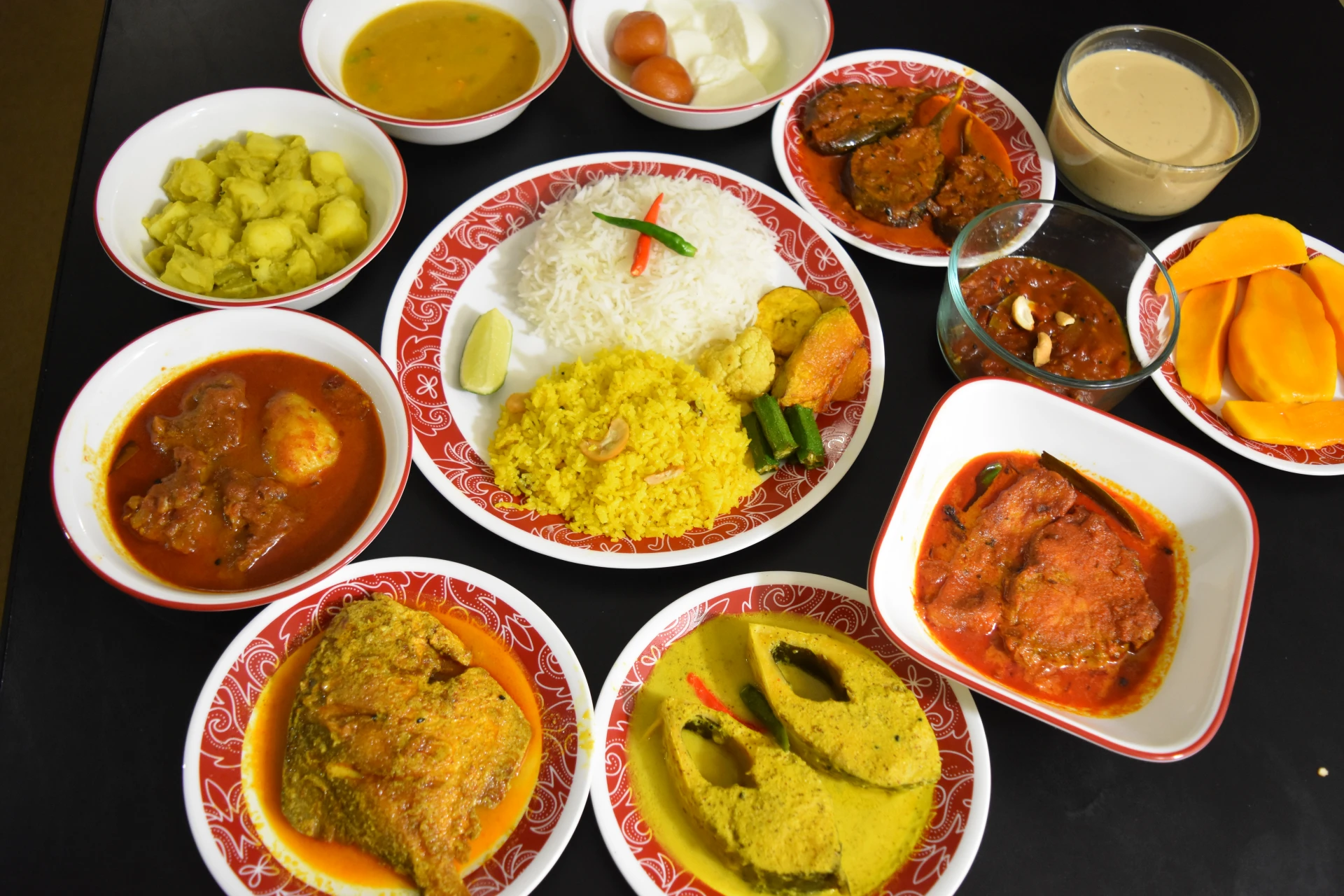 Välj mellan veg./räkor/kyckling/biff/lamm som tillagad med grönsaker, smörstekt ris och biryanisås